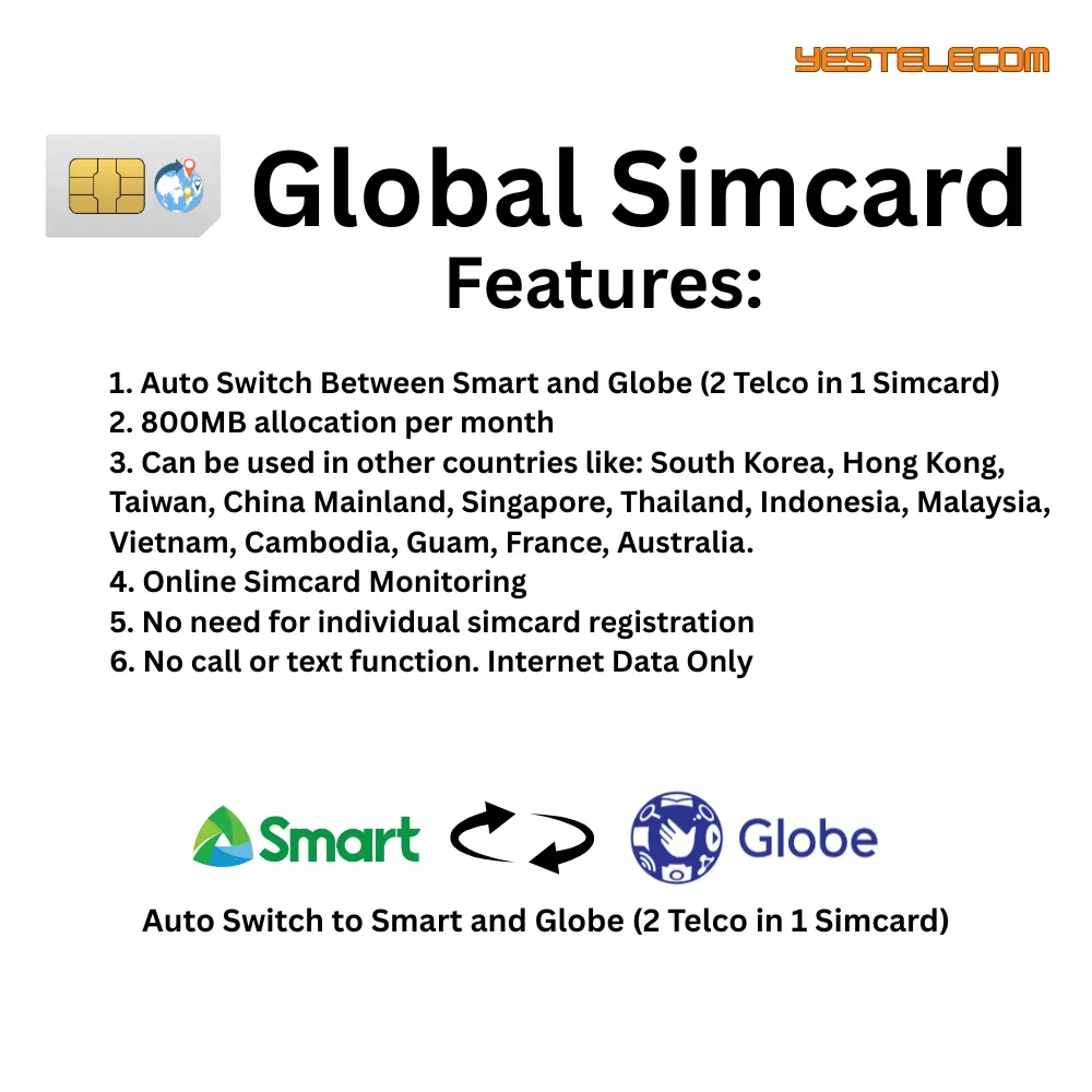 Yestelecom Simcard - Global Simcard for PoC Radio / CCTV / GPS Device (1 YEAR DATA SERVICE)